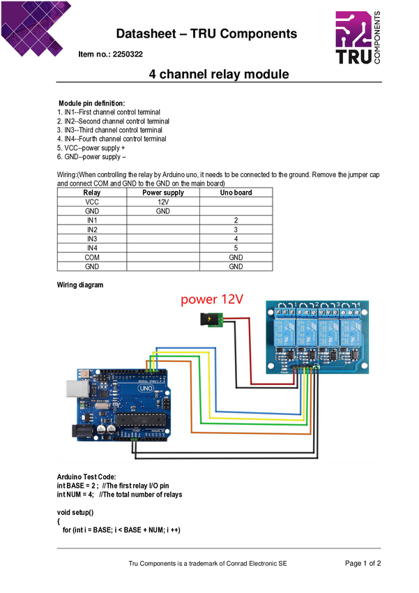 Moduł przekaźnikowy poczwórny 12V TRU COMPONENTS TC-9001288