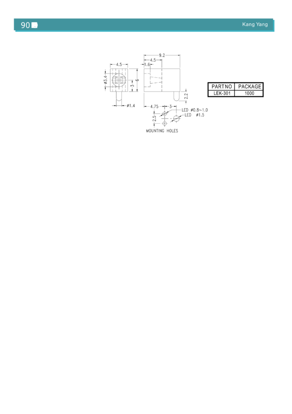 Podstawka pod 2 x LED 3mm, kątowa z elementem stabilizującym do PCB