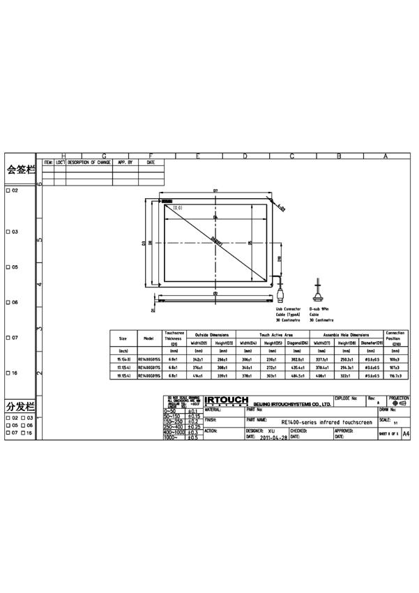 Panel dotykowy na podczerwień, do wyświetlaczy TFT , OS WINDOWS/LINUX, z interfejsem RS232