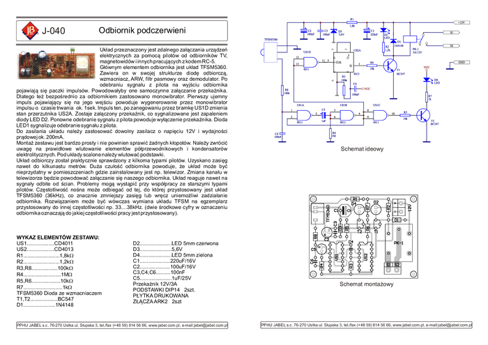 J-040 Odbiornik podczerwieni - zestw do montażu