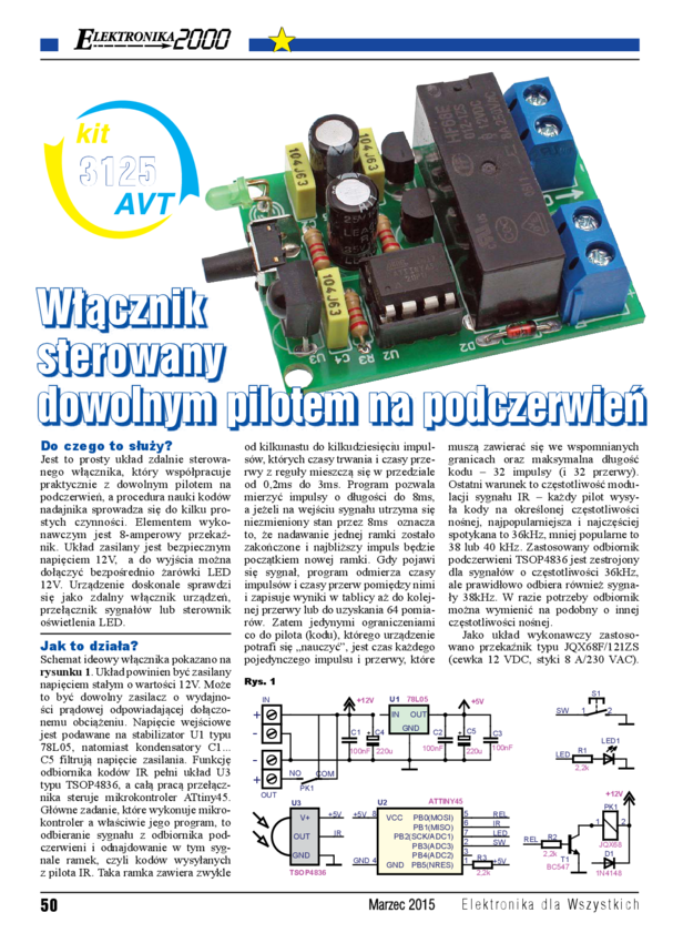 AVT3125 Włącznik sterowany dowolnym pilotem na podczerwień