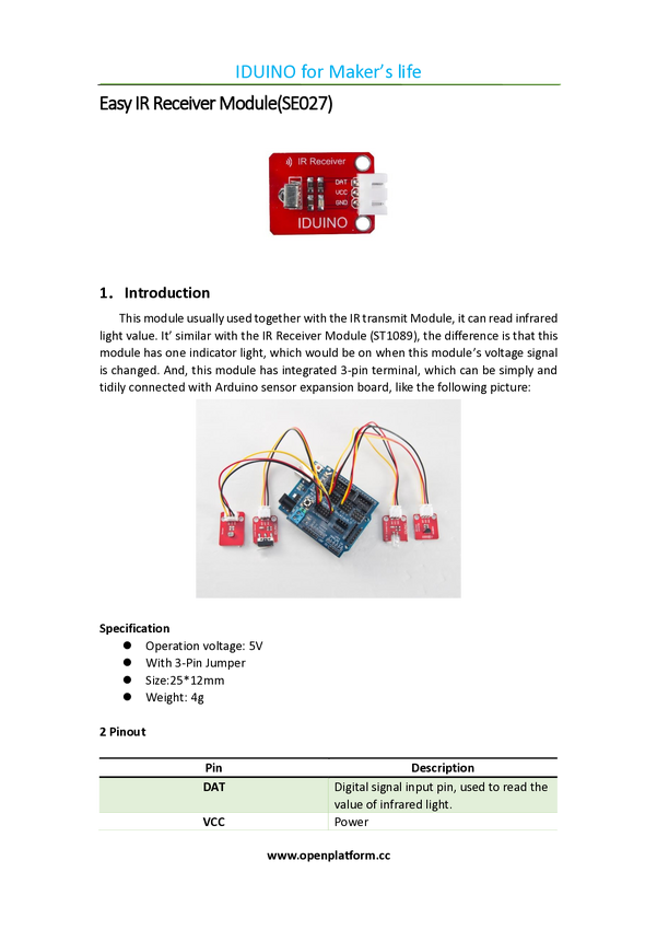 Odbiornik podczerwieni Iduino 1485317 1 szt.
