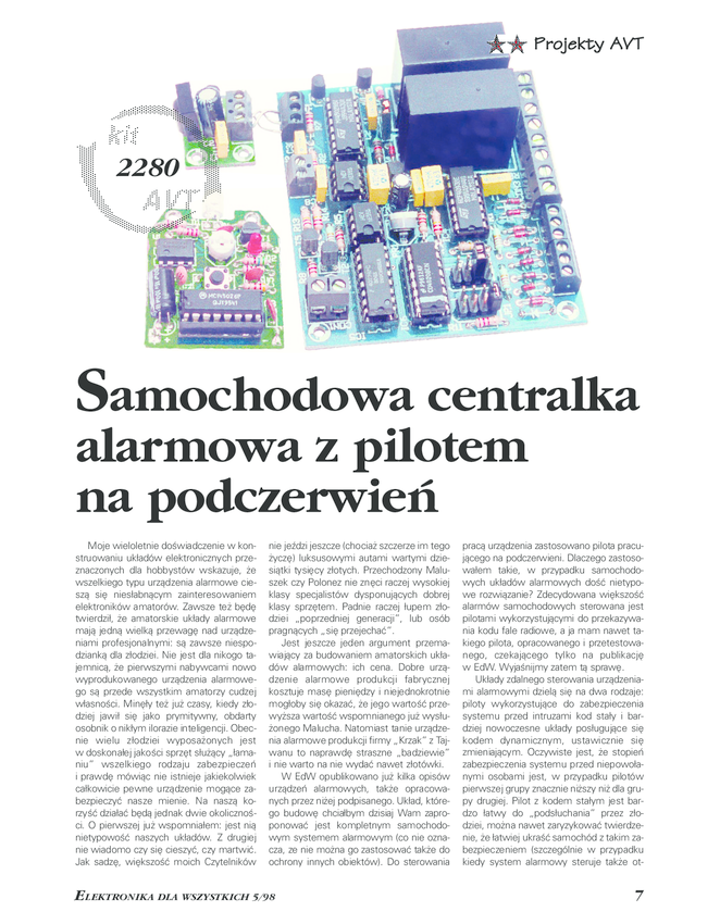 AVT2280/1 Samochodowa centralka alarmowa z pilotem na podczerwień