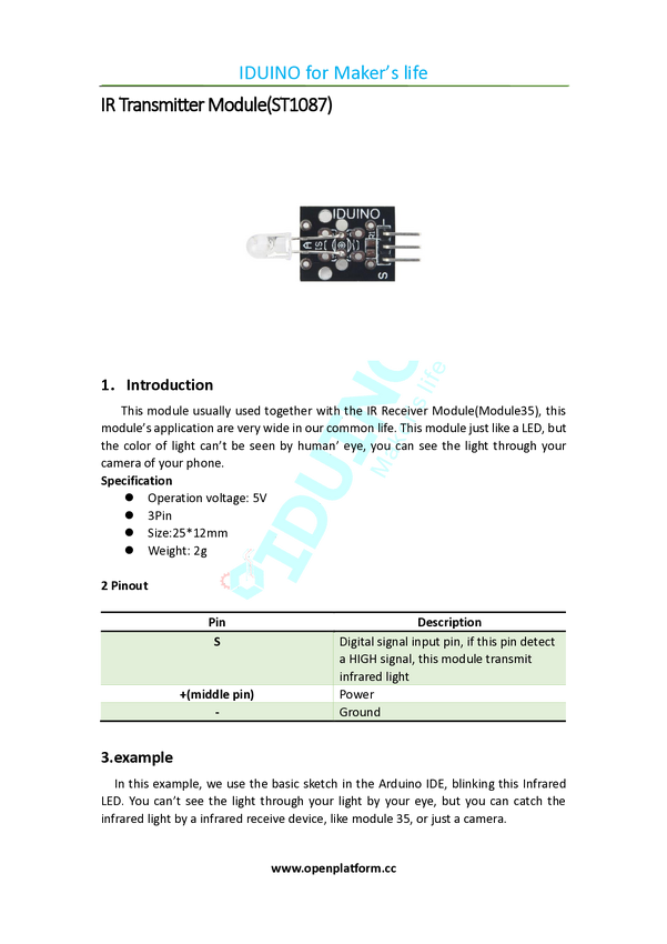 Nadajnik podczerwieni Iduino 1485309 1 szt.
