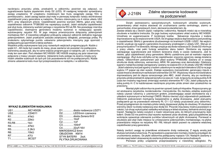 J-216 Zdalne sterowanie kodowane na podczerwień