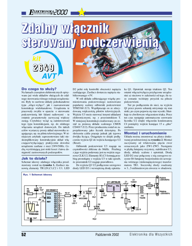 AVT2649 B Zdalny wyłącznik sterowany podczerwienią - zestaw do samodzielnego montażu