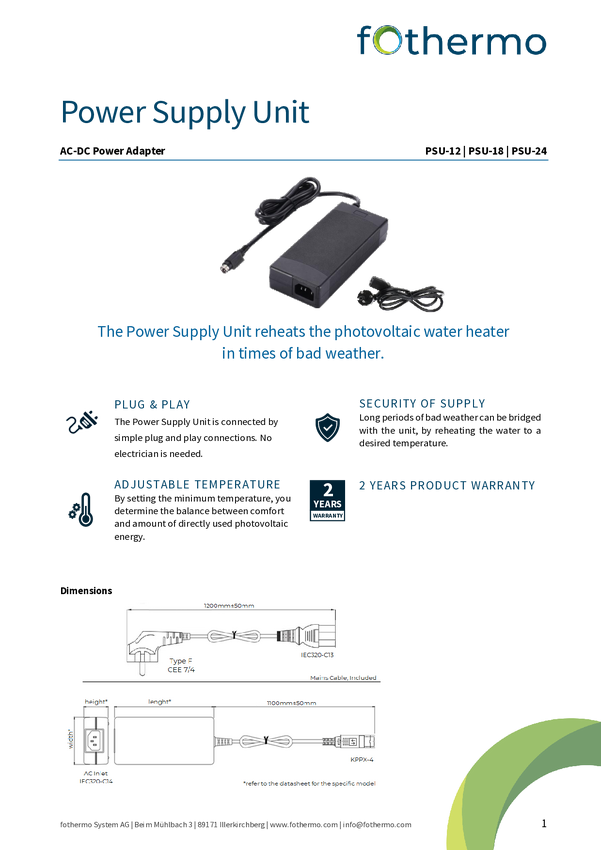 Zasilacz do podgrzewacza wody PSU-AC Nachheizung 24V (für 80 Fothermo 2003-PSU-24