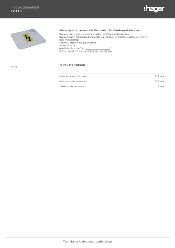 Hager FZ375 Przejrzysty panel podglądu 1 szt.