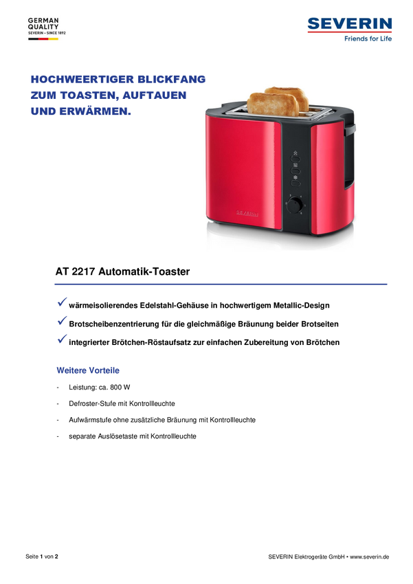 Toster przewodowy, z podgrzewaczem do bułek Severin AT 2217