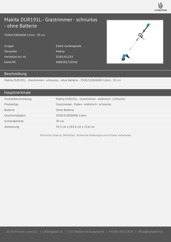 Makita DUR191LZX3 akumulatorowy Podkaszarka bez akumulatora 18 V Maksymalna szerokość cięcia: 30 cm