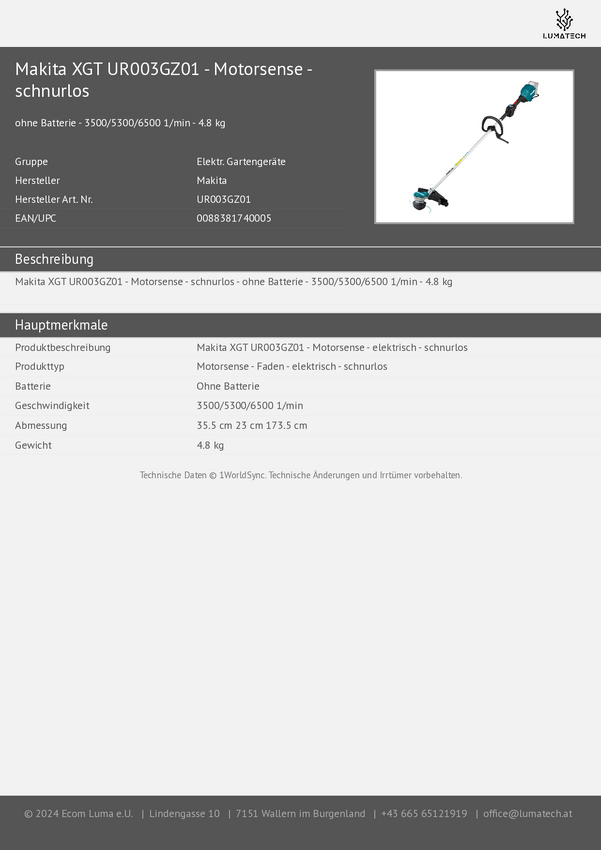 Makita UR003GZ01 akumulatorowy Podkaszarka bez akumulatora 40 V Maksymalna szerokość cięcia: 35 cm
