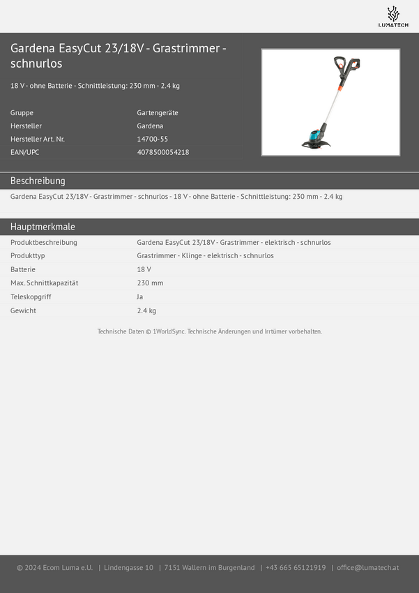 GARDENA EasyCut 23/18V P4A solo akumulatorowy Podkaszarka bez akumulatora
