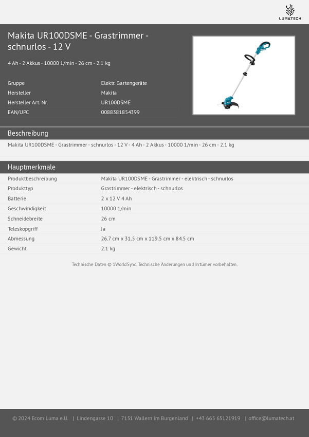Makita S_0380_6277611 akumulatorowy Podkaszarka 12 V 4 Ah Maksymalna szerokość cięcia: 23 cm