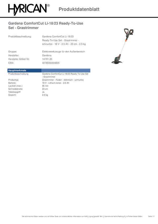 GARDENA ComfortCut 23/18V P4A Ready-To-Use-Set akumulatorowy Podkaszarka zaw. akumulator, zaw. ładowarkę 18 V
