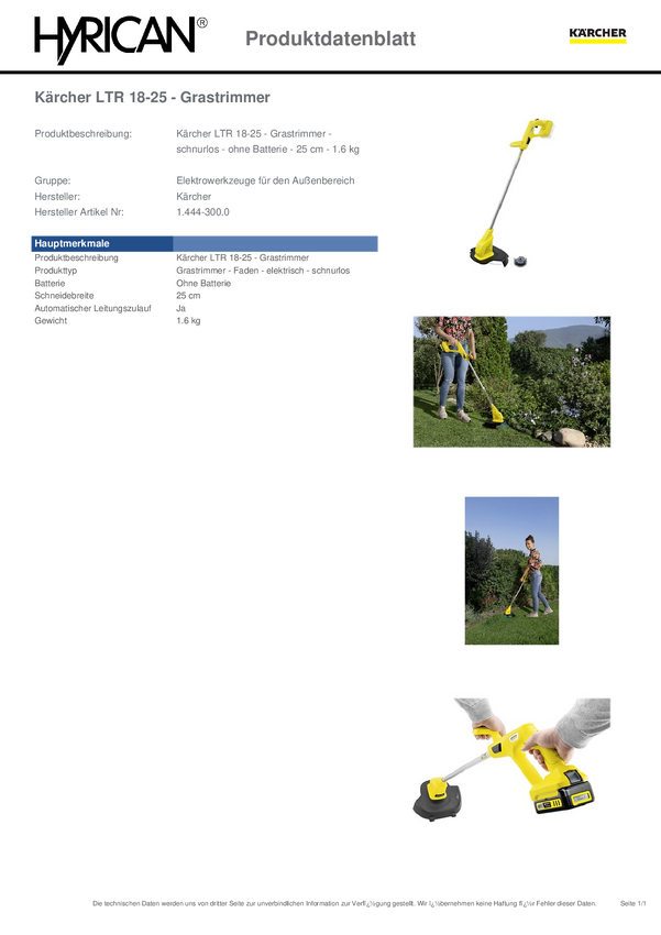 Kärcher Rasentrimmer LTR 18-25 Battery Set akumulatorowy Podkaszarka 18 V 2.5 Ah