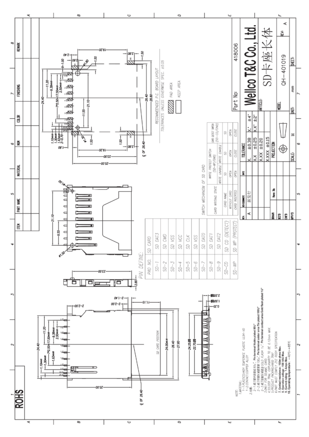 Podstawka SIM, 6-stykowa + switch , taśmowane 900szt/rolka, WELLCO