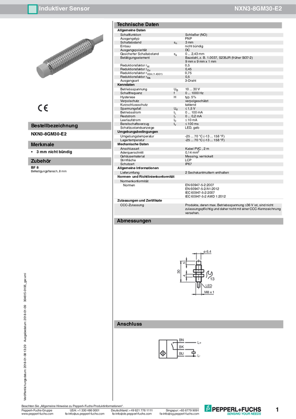 Pepperl+Fuchs Czujnik indukcyjny nie podtynkowy PNP NXN3-8GM30-E2