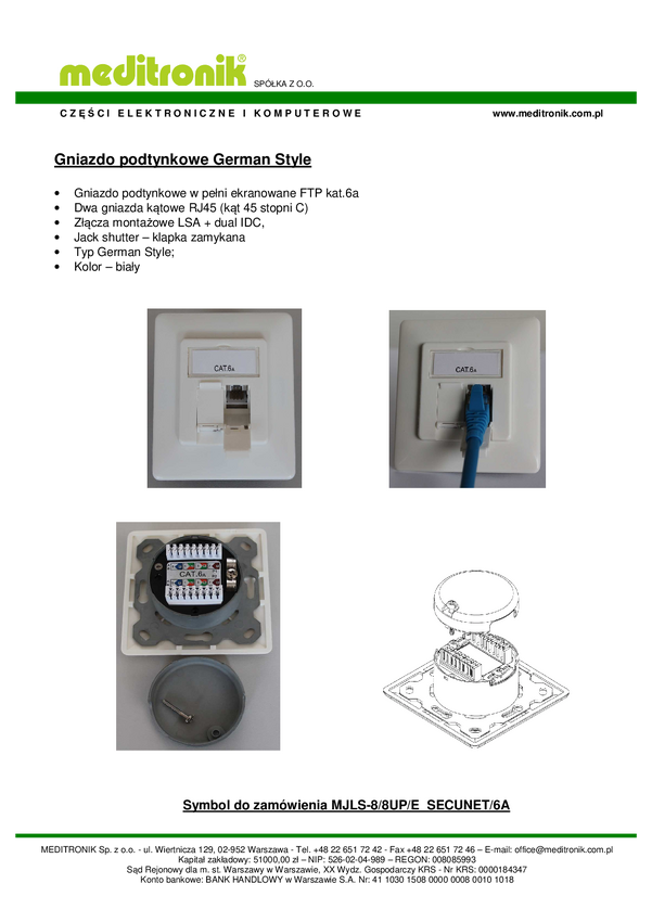 Gniazdo podtynkowe pojedyncze RJ45 UTP kat.5e montaż LSA+