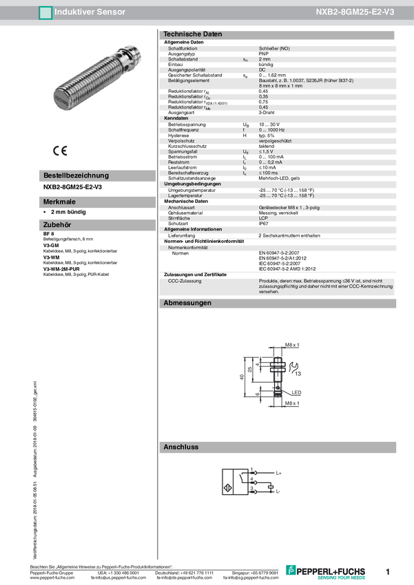 Pepperl+Fuchs Czujnik indukcyjny podtynkowy PNP NEB3-8GM40-E2-V1