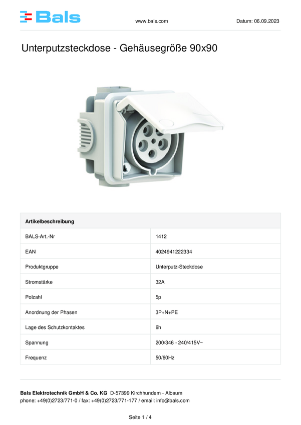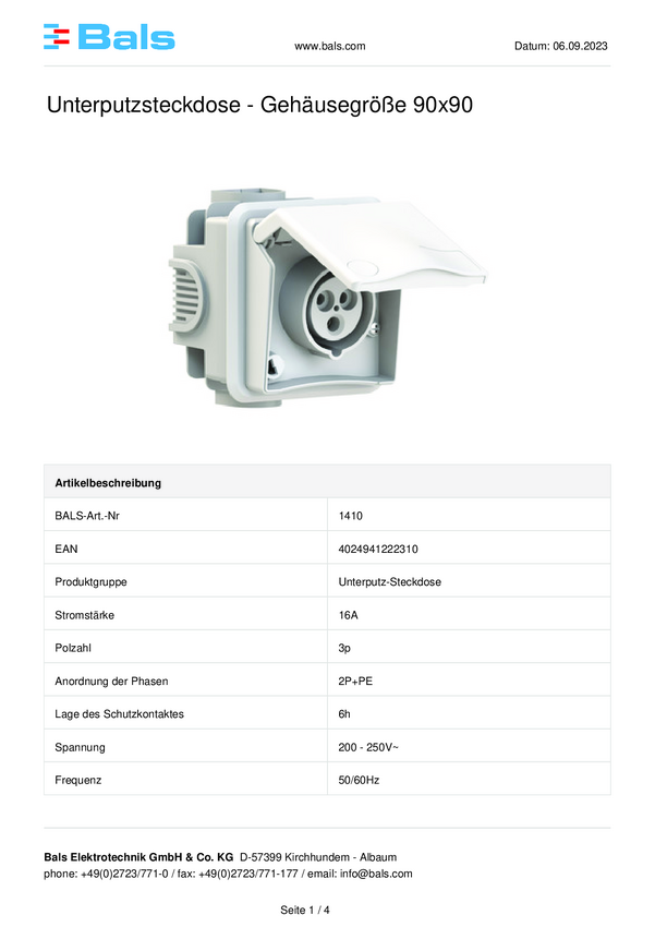 Bals Elektrotechnik 71012 Gniazdo podtynkowe IP44
