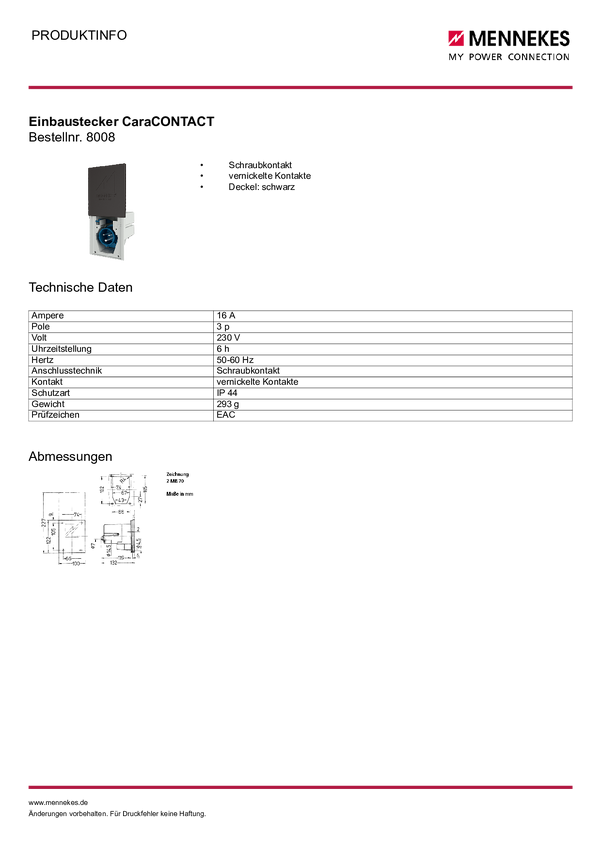 Gniazdo podtynkowe CEE MENNEKES 8008 16 A 230 V/AC