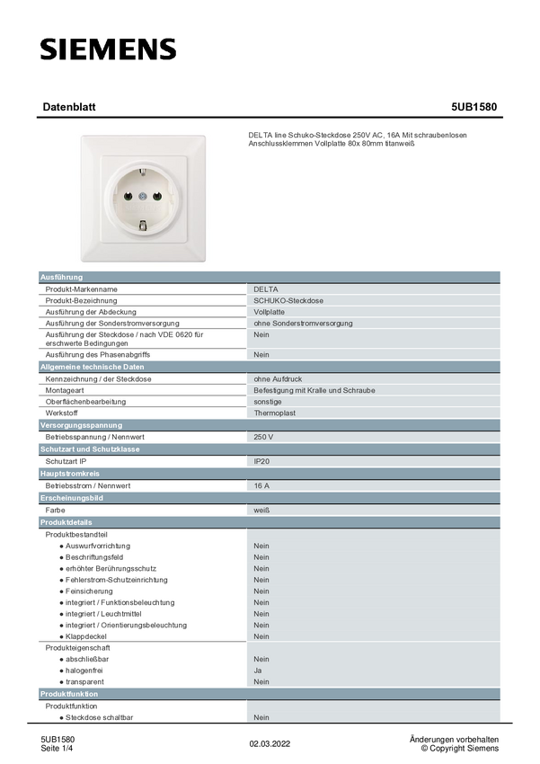 Gniazdo podtynkowe Siemens 5UB1580 biały