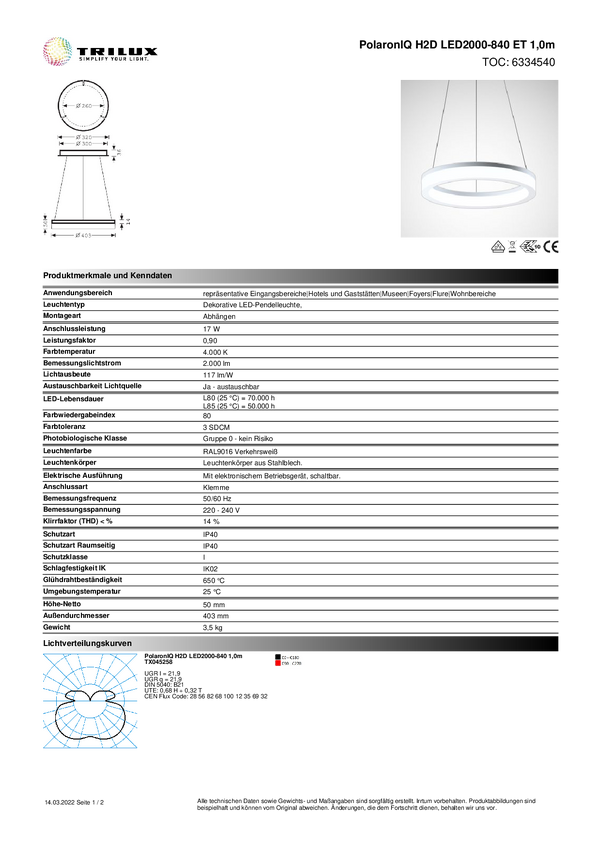 Lampa podwieszana LED Trilux Creavo H2-L #7736351 7736351 brak 33 W biały