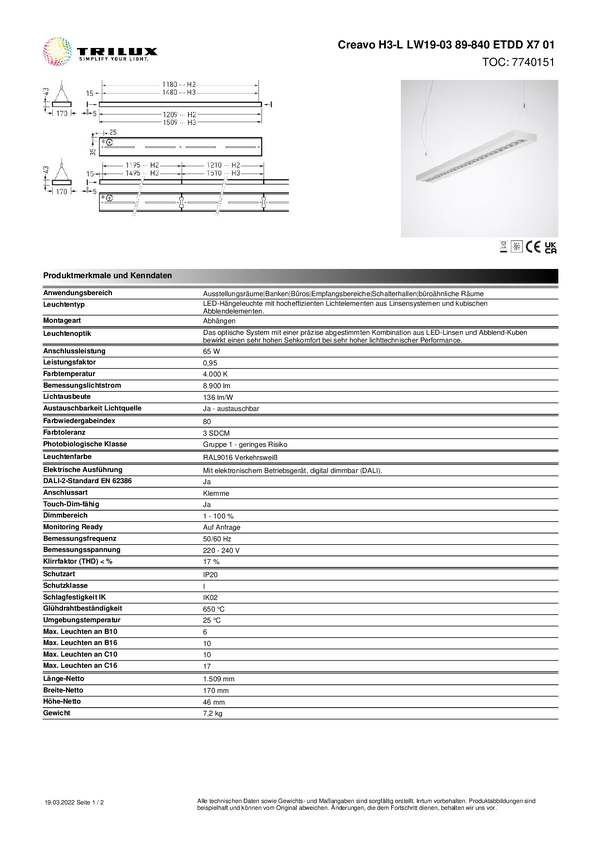 Lampa podwieszana LED Trilux Creavo H3-L #7739440 7739440 brak 64 W biały