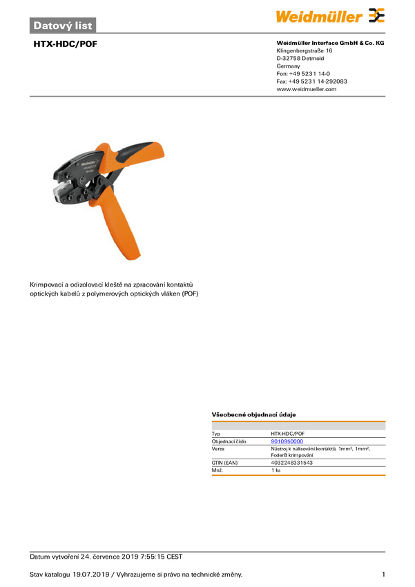 Weidmüller HTX-IE-POF 1208870000 Zaciskarka polimerowe światłowody (POF)
