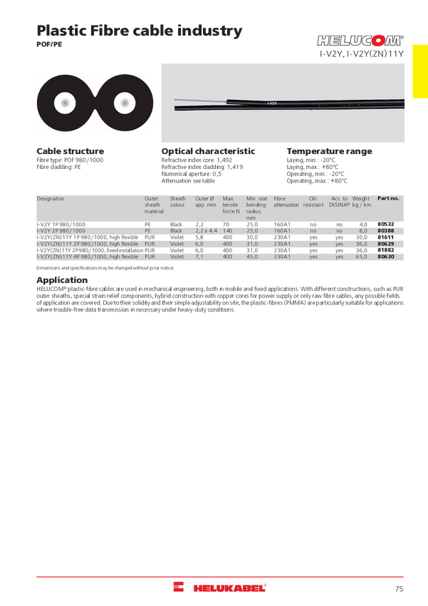 LAPP 28020001/1 Kabel POF Hitronic POF 980/1000 µ Simplex pomarańczowy Produkty w metrach bieżących