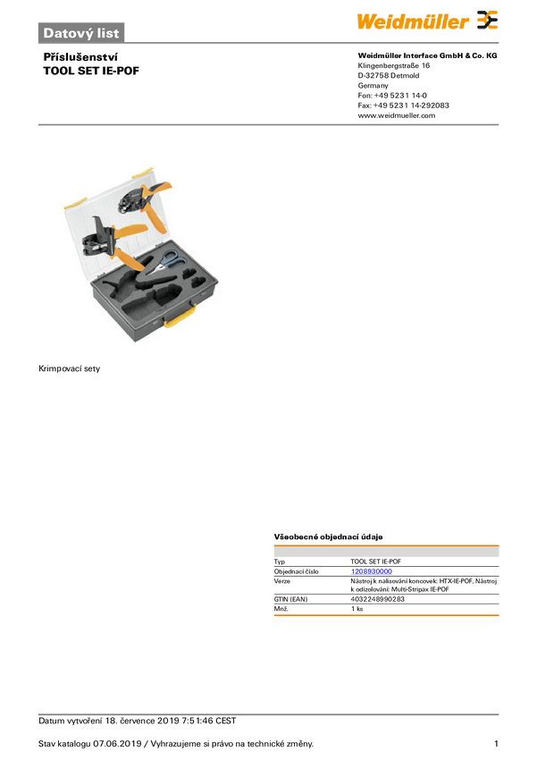 Zaciskarka Weidmüller TOOL SET IE-POF 1208930000