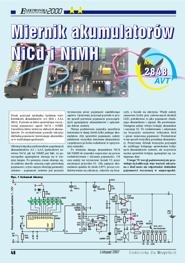 AVT2848 Miernik pojemności akumulatorów NiCd i NiMH