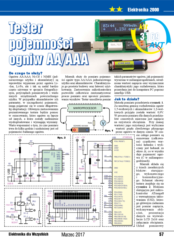 AVT5270 Mikroprocesorowy miernik pojemności ogniw AA - AAA