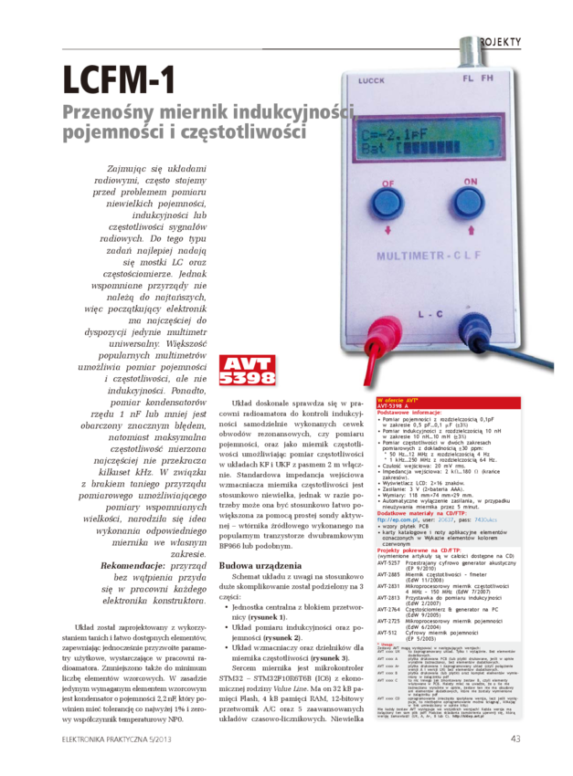AVT5398 A LCFM-1 - przenośny miernik indukcyjności, pojemności i częstotliwości - płytka drukowana