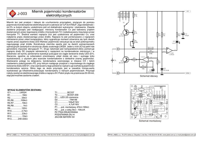 J-003 Miernik pojemności kondensatorów elektrolitycznych - zestaw do montażu