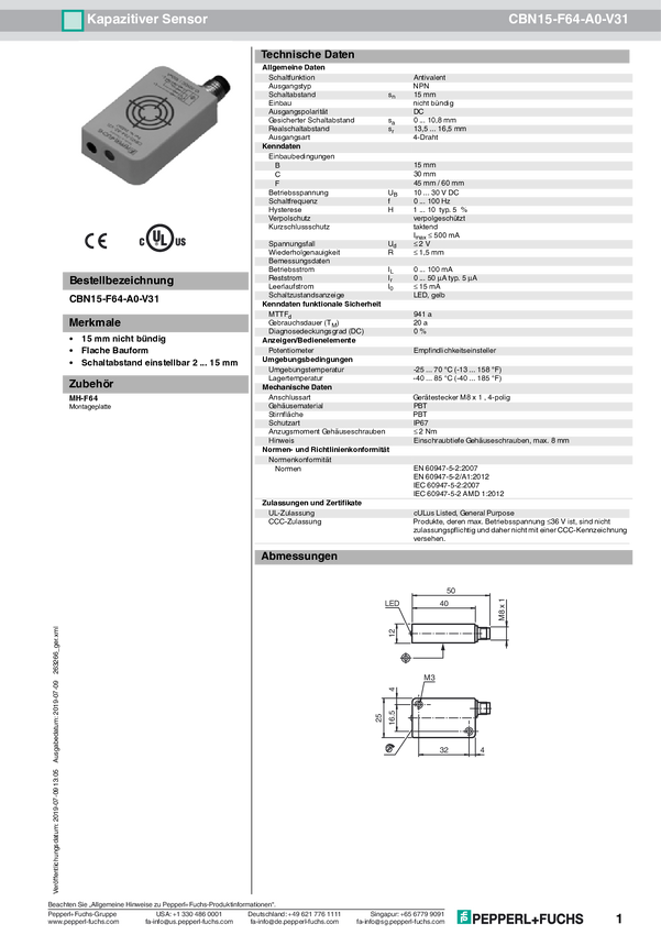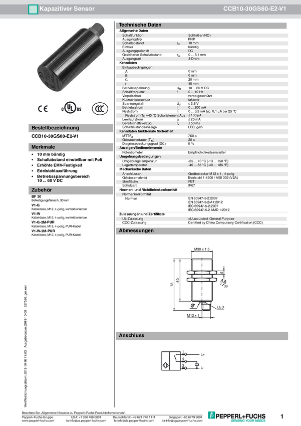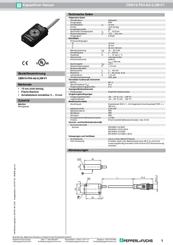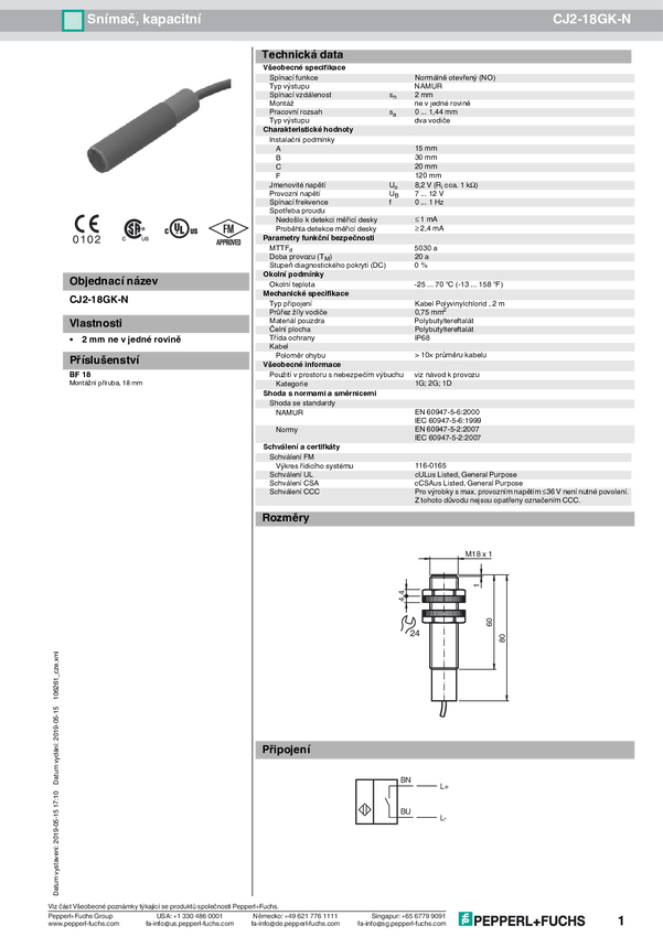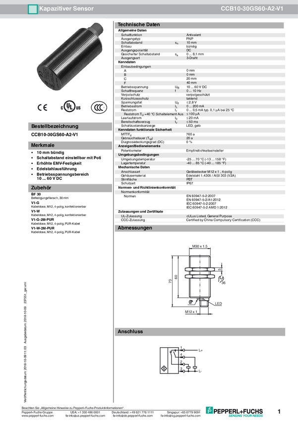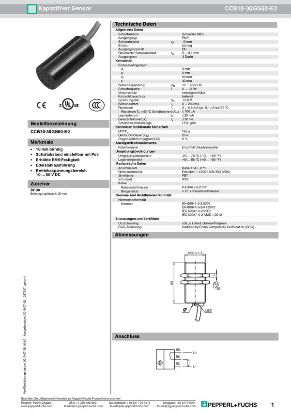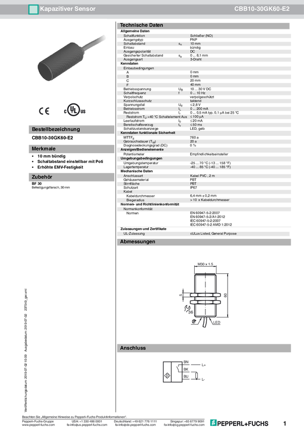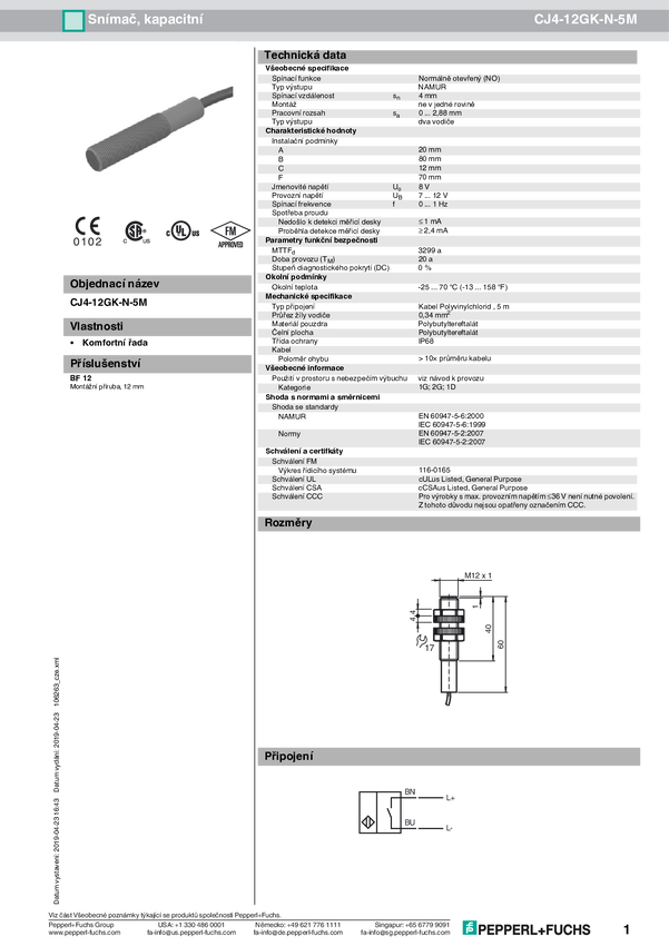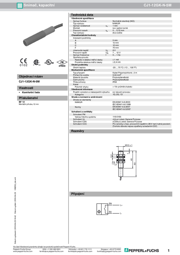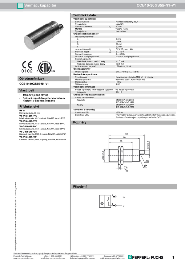 Czujnik pojemnościowy Pepperl+Fuchs 70135022 1 szt.