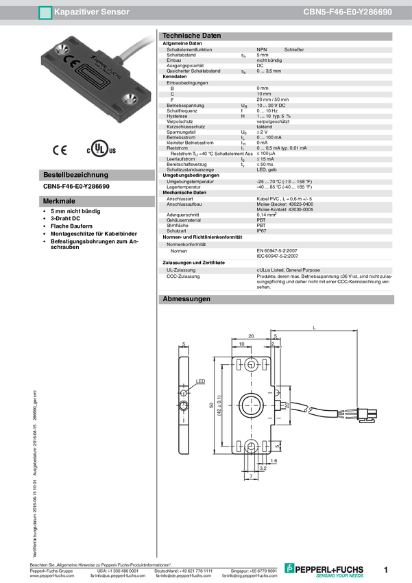 Czujnik pojemnościowy Pepperl+Fuchs 286690 1 szt.