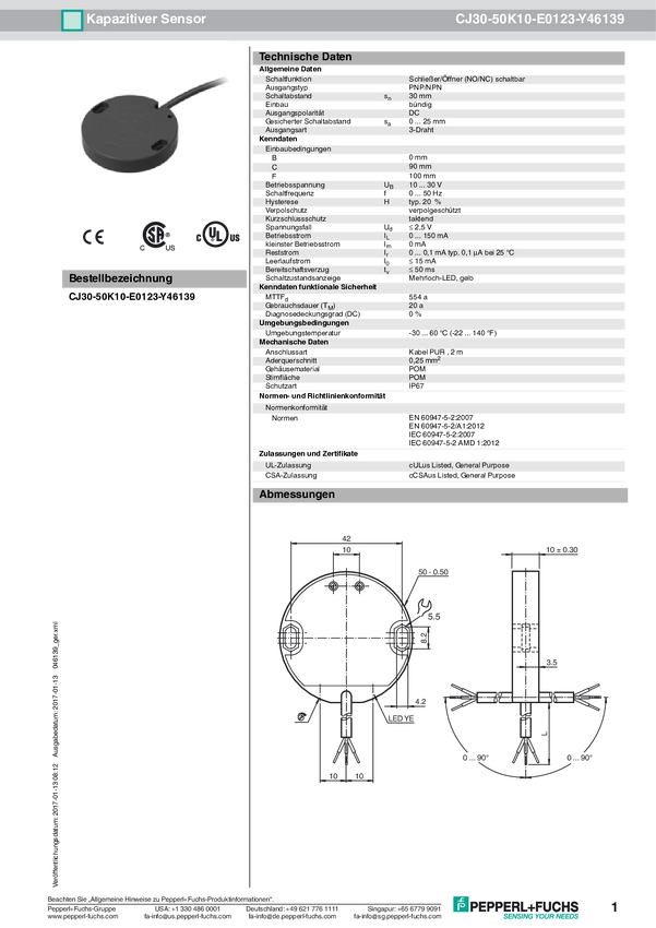 Czujnik pojemnościowy Pepperl+Fuchs 046139 1 szt.