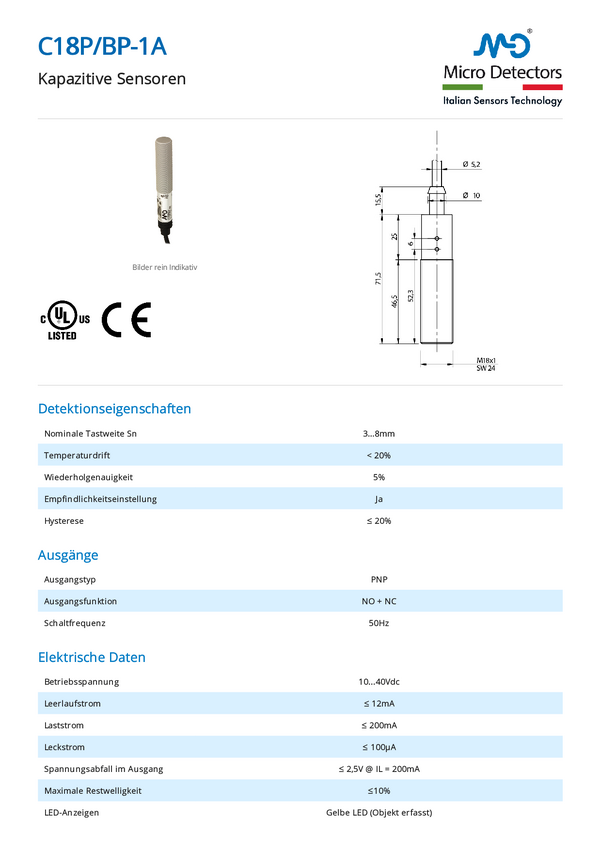 Czujnik pojemnościowy MD Micro Detectors C18P/BP-1A 1 szt.