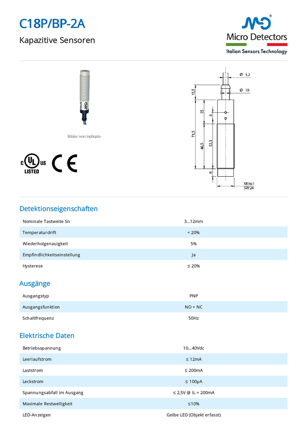 Czujnik pojemnościowy MD Micro Detectors C18P/BP-2A 1 szt.