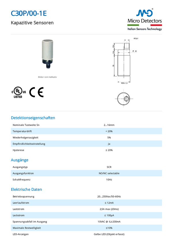 Czujnik pojemnościowy MD Micro Detectors C30P/00-1E 1 szt.