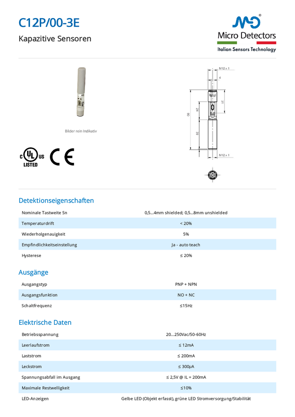 Czujnik pojemnościowy MD Micro Detectors C12P/00-3E 1 szt.