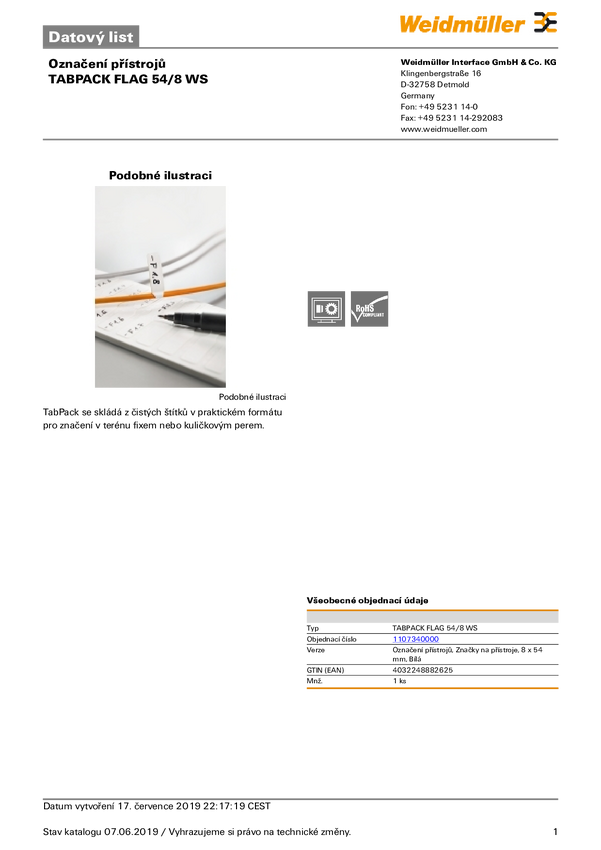 Weidmüller 1107340000 TABPACK FLAG 54/8 WS Etykieta kablowa 54 x 8 mm Kolor pola etykiety: biały Ilość etykiet: 120