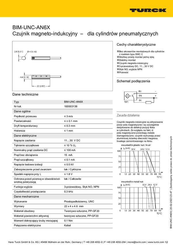 Turck Czujnik pola magnetycznego NPN BIM-UNC-AN6X