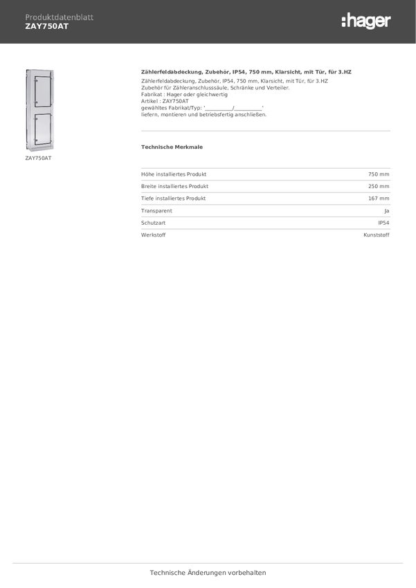 Hager ZAY750AT Osłona pola licznika tworzywo sztuczne 1 szt.