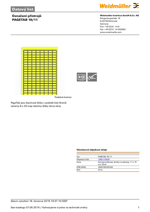 Weidmüller 1686170000 PAGETAB 19X11 Etykieta kablowa 19 x 11 mm Kolor pola etykiety: żółty Ilość etykiet: 5000