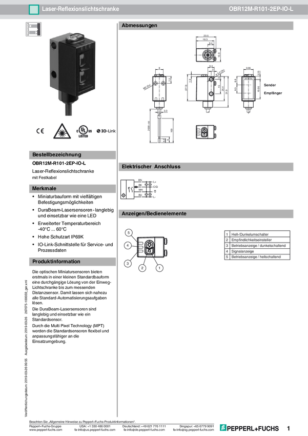 Fotokomórka refleksyjna laserowa Pepperl+Fuchs OBR12M-R101-2EP-IO-L 267075-100033 Polaryzator, Przełącznik (Jasność / Ci