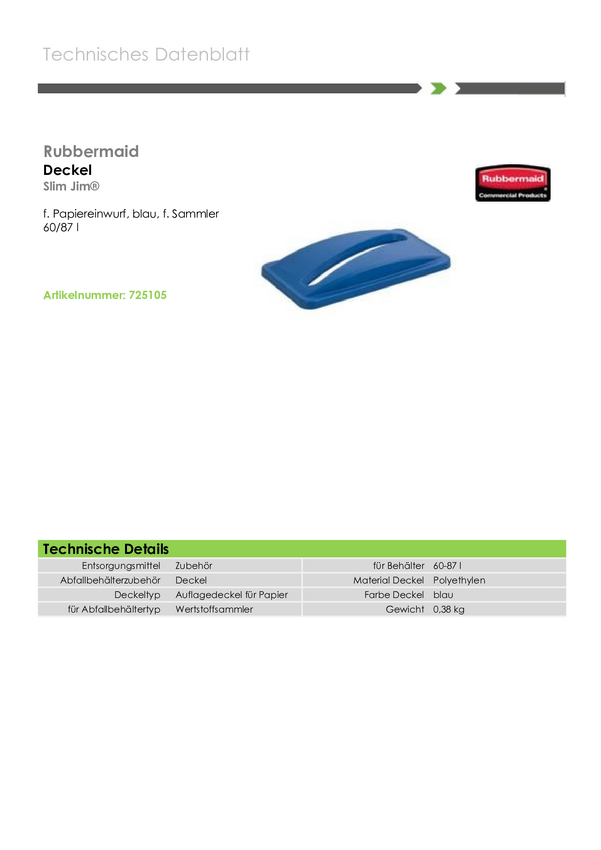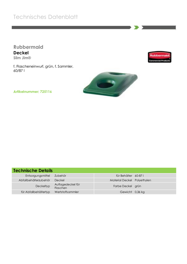 Rubbermaid 0086876147629 Pokrywa polietylen (D x S x W) 520 x 290 x 70 mm zielony N/A 1 szt.