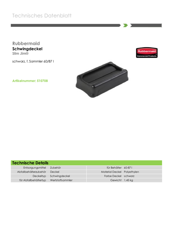 Rubbermaid Abfalltonnendeckel 0086876186406 Pokrywa polipropylen (D x S x W) 52.07 x 28.96 x 12.7 cm czarny N/A 1 szt.