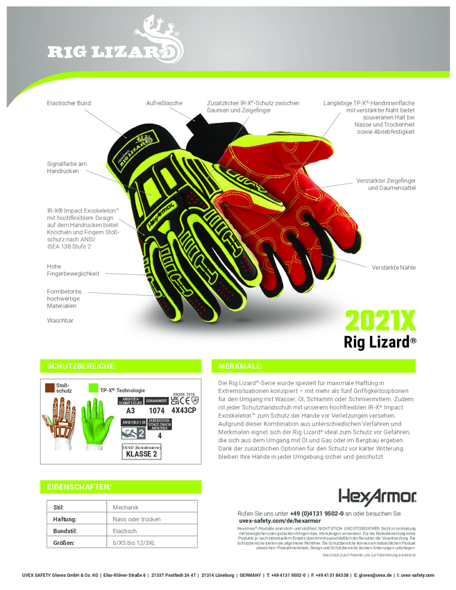 HexArmor Rig Lizard 2021X 6067008 Bawełna, Polyester, Elastan Rękawice chroniące przed przecięciem Rozmiar rękawic: 8 1
